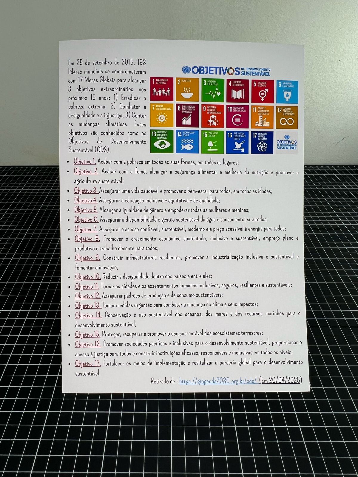 🔵01 atividade (TABELÃO) de colagem sobre as 17 ODSs (02 folhas de oficio A4);
